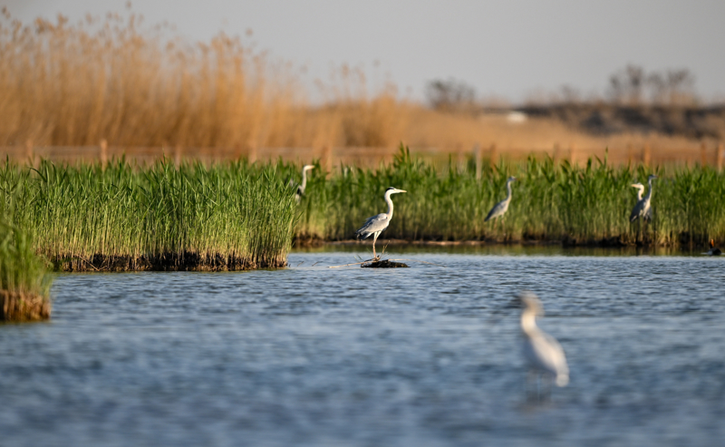 4月17日,苍鹭在沙湖中栖息。 新华社记者 冯开华 摄