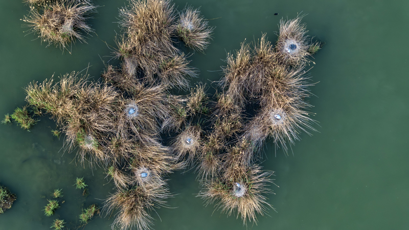 这是4月17日在沙湖拍摄的苍鹭鸟巢。 新华社记者 王鹏 摄