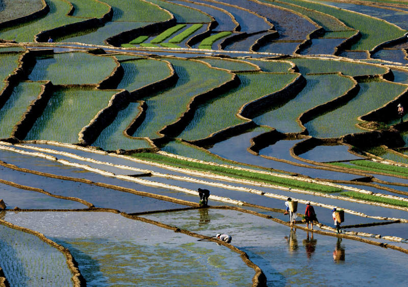 4月18日,村民在梯田上劳作。 新华社记者 江宏景 摄