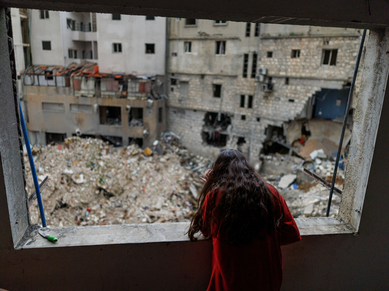 4月18日,在黎巴嫩奈拜提耶,一名重返家园的女孩站在家中。 新华社/路透