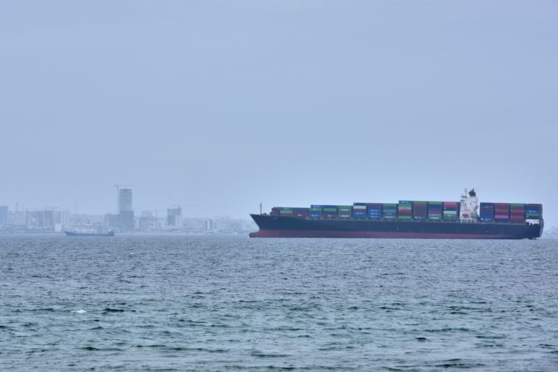 这是4月18日拍摄的停泊在霍尔木兹海峡的货轮。 新华社/美联